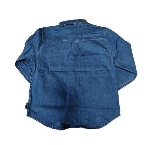 デニム素材/カツラギ素材のスナップボタンシャツ。