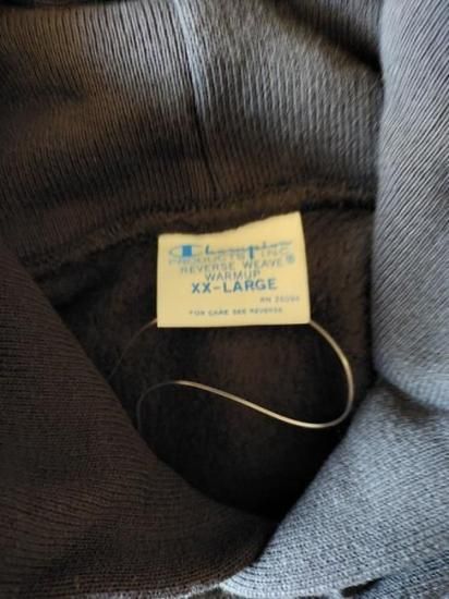 本来は縦方向に使われる生地を横方向に使用する「REVERSE WEAVE®」製法によって縦の生地の縮みを防ぐと同時に、両脇に「EXPANSION GUSSET(エクスパンションガゼット)」を付けることで横の縮みへの影響を少なくし、動きやすさに配慮しています。オーセンティックなシルエットで、ネームタグには1970年代モデルの「青単タグ」(青単色タグ)を採用。