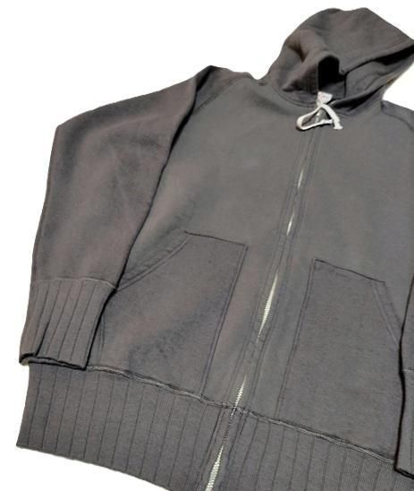 肉厚な吊り裏毛(丸胴)を使用したフルジップパーカー。